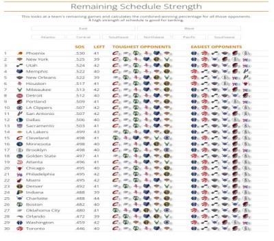 排名越高剩余赛程难度越高,排名越低剩余赛程难度越低!
