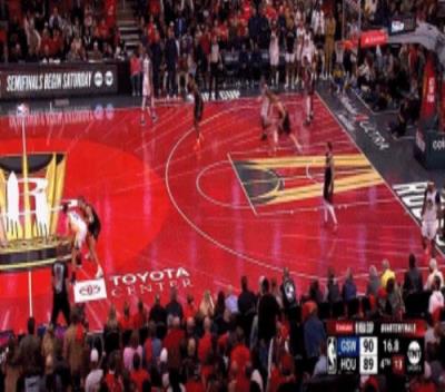 库里三分不中,小佩顿抢到篮板,但随后的传球出现失误,库明加在抢球的过程中被吹犯规,杰伦-格林两罚全中。
