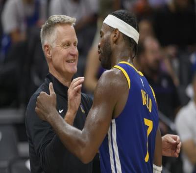 相较之下首发就显得平平无奇,5人合计得到56分,维金斯、追梦和库里三人上双。
