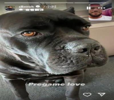 赛前,布克更新INS晒出自己与远在美国的爱犬的“视频聊天”截图,写道:“赛前之爱。”