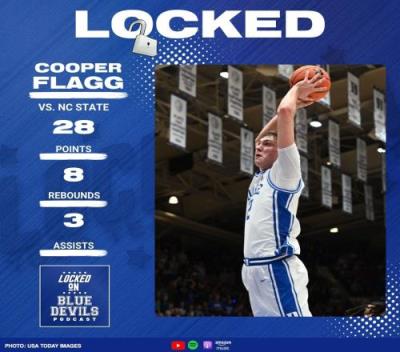 体育资讯01月28日报道宣称 NCAA杜克大学74-64击败北卡州立大学豪取14连胜,弗拉格上半场5分,下半场23分。
