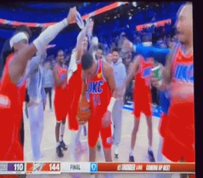 赛后,维金斯拿到了比赛用球,还被队友泼水庆祝。