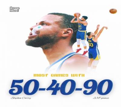 美媒:库里生涯命中率达504090场数来到238场NBA历史第一