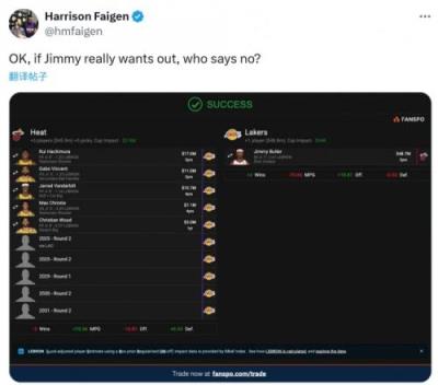 湖人随队记者Harrison Faigen晒出了自己的交易方案,湖人送出5名球员和5个选秀权,具体如下: