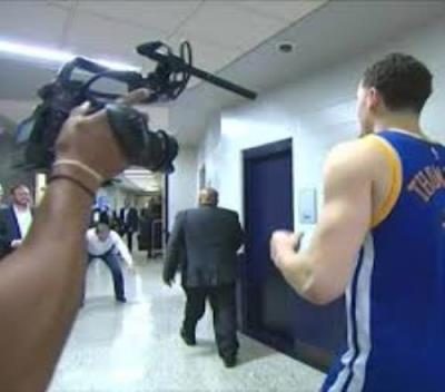 拉科布对克莱印象最深刻的当然是2016年对阵雷霆的西决G6,克莱天神下凡狂轰11记三分爆砍41分,将系列赛带回了湾区。在克莱返回更衣室时,拉科布在球员通道朝克莱下跪也成为了名场面。