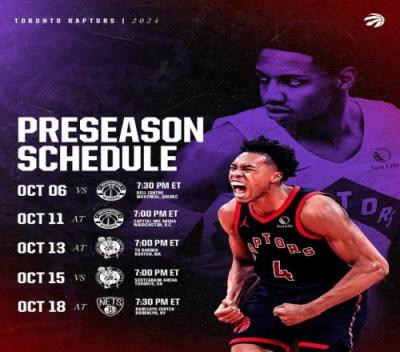 体育资讯7月31日报道宣称 今天,猛龙队公布了球队24-25赛季季前赛赛程,球队将两战奇才和凯尔特人。