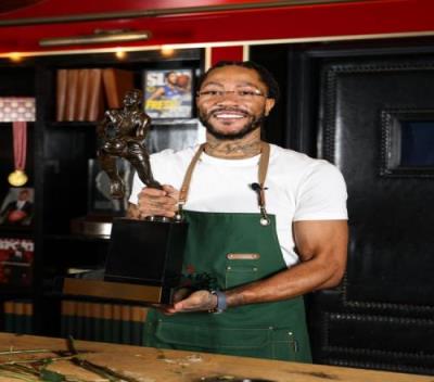 在德里克-罗斯之夜前夕,罗斯现身芝加哥,开设了为期一天的快闪花店与球迷们共度时光,罗斯在花店内还捧起自己的MVP奖杯。