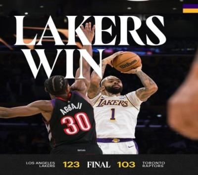 体育资讯11月11日报道宣称 NBA常规赛,湖人123-103击退猛龙。