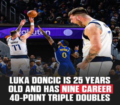 他才25岁!狂轰45+11+13+3+2!东契奇砍9次40+三双已高居历史第4
