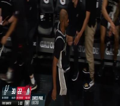 首节还剩1分多钟时,保罗抱怨对方有犯规裁判没吹,吃到一个T;下一个回合,保罗依旧在跟裁判抱怨,再吃一个T被驱逐。