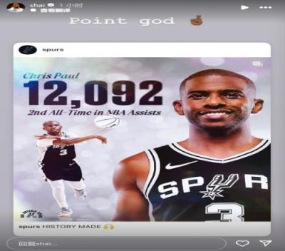 对此,雷霆球星亚历山大转发评论道:“控卫之神。”