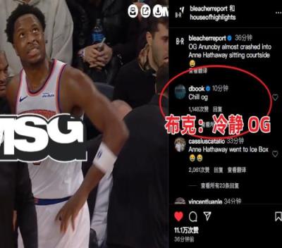 OG阿努诺比救球险些撞到好莱坞巨星安妮海瑟薇布克:冷静点!