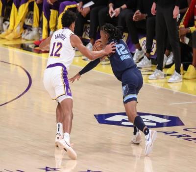 本场比赛,湖人后卫克里斯蒂虽然自身进攻角色不多,但他在防守端对莫兰特的限制很成功,后者21投6中只得到20分。