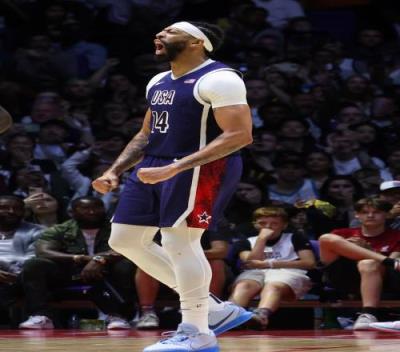 本场比赛,美国男篮球员浓眉攻防两端表现全面,打了15分钟9投5中,三分2中1、罚球2中2拿到13分8篮板3助攻2抢断1盖帽,正负值+9。
