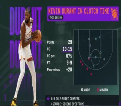 死神镰刀!KD本季关键时刻:29分!命中率67%中投9中8