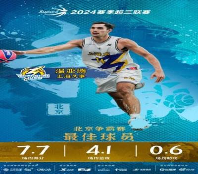 来自上海久事三人篮球俱乐部的球员温亚德,以场均7.7分4.1篮板0.6助攻的全面表现,荣膺本次争霸赛最佳球员称号!
