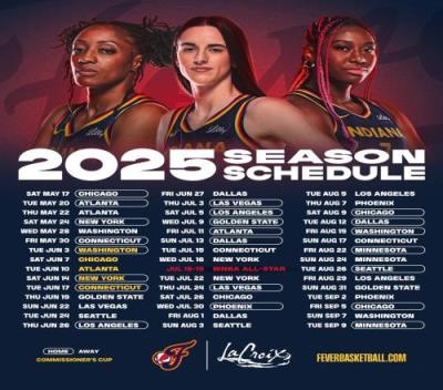 本赛季最佳新秀凯特琳-克拉克与她所在的印第安纳狂热,同样将在5月18日迎来新赛季首战,她们的对手则是上赛季四次交手均引爆收视率、安吉尔-里斯所在的芝加哥天空。