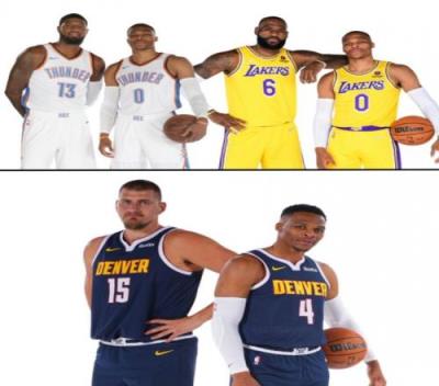 威少和三位不同的队友同场砍过三双NBA历史首人