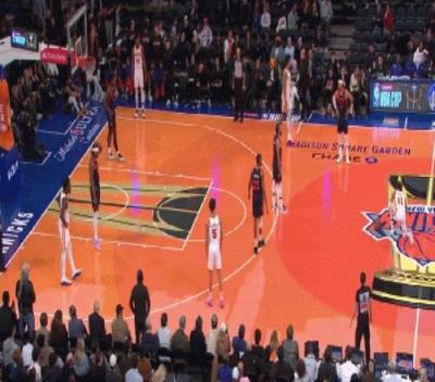 赛后,尼克斯媒体发布了一段老鹰球星特雷-杨站在尼克斯主场LOGO处一边运球一边模仿掷骰子动作的视频。