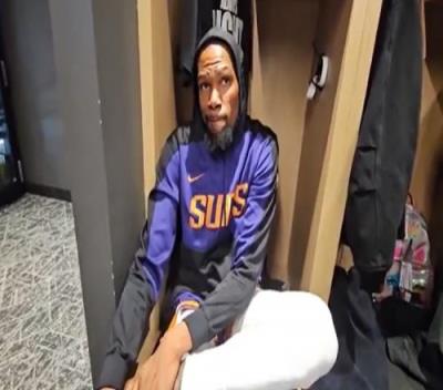 赛后采访,杜兰特表示:“(面对联防时)你不能只是单纯地传球,然后绕着外线回来走,那正是他们希望你做的。我们仍然需要尽力去突破他们的防线。当他们有球员在禁区蹲守时,我们只是在外线传球,没打出直接的进攻威胁,那时候他们开始回收防线,所以你很难攻破他们的防守。面对这种防守是挺难的,如果你只想着投篮机会会自己出现,而不主动去施压那是不行的。我认为我们本可以多突破几次。但我们并不是每场比赛都遇到联防,我们目前还没有完整的联防进攻战术包,我们对此不熟悉。所以,面对对手突然使出的联防,我们需要调整。他们是个强队,他们总能及时做出调整。”