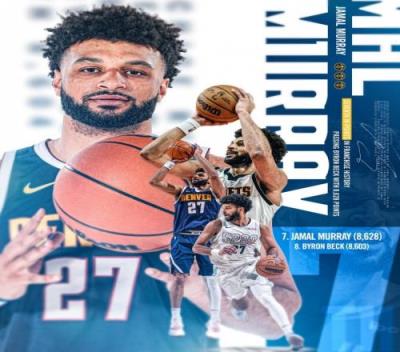 本场赛后,穆雷掘金生涯得分来到8628分,超越拜伦-贝克排名队史第7。
