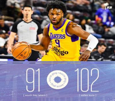 体育资讯12月14日报道宣称 G联赛常规赛,南湾湖人91-102背靠背不敌山谷太阳,遭对手双杀。