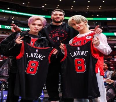 花样美男!韩国偶像男团NCTDREAM造访公牛主场与拉文合影