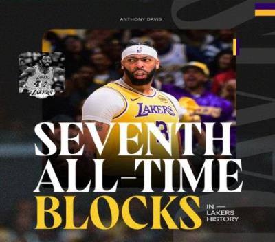 小里程碑!浓眉湖人生涯盖帽数超詹姆斯沃西上升至队史第七位