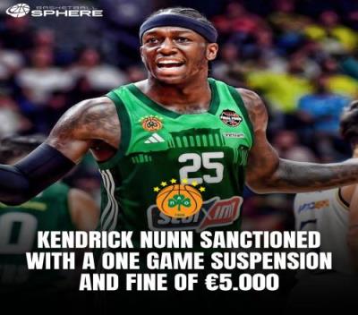 体育资讯12月12日报道宣称 近日欧洲篮球联赛第14轮,帕纳辛奈科斯73-91不敌贝尔格莱德游击,前湖人、热火球员肯德里克-纳恩因对判罚不满辱骂裁判吃到第二T被驱逐。