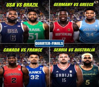 奥运男篮8强对阵:美vs巴、塞vs澳、加vs法、德vs希