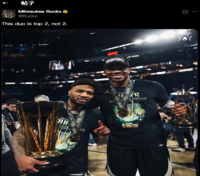 赛后,雄鹿官方更推晒出字母哥和利拉德的合照并配文:“这对组合排名前二,但不是第二。”