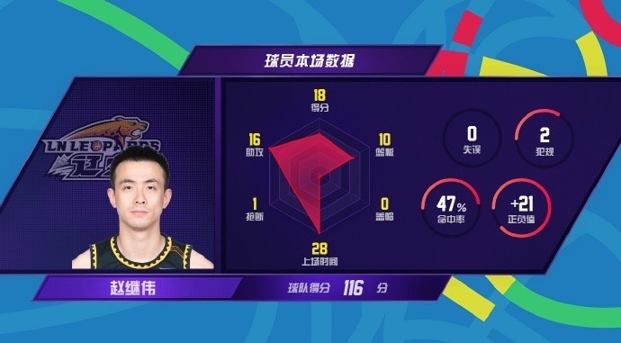 昨晚的一场CBA常规赛中,辽宁男篮在客场以116比88的大比分战胜四川男篮。而这场比赛也成为了赵继伟的个人里程碑。