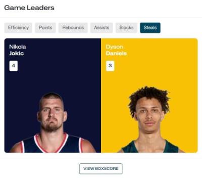 效率值&得分&篮板&助攻&抢断&盖帽数据:约基奇6项第一