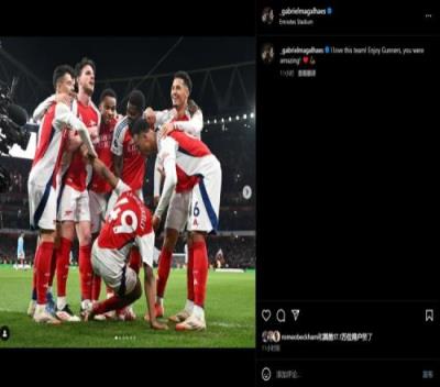 体育资讯2月3日报道宣称 本轮英超焦点战,阿森纳主场5-1血洗曼城。赛后,加布里埃尔更新社媒,庆祝这场大胜。