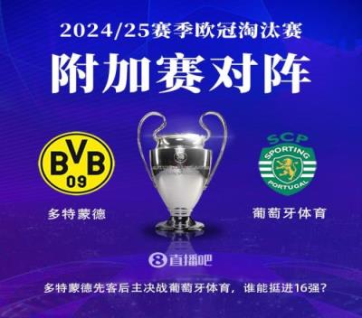 体育资讯01月31日报道宣称 2024/25赛季欧冠淘汰赛阶段附加赛抽签结果今日出炉,多特vs葡体,多特先客后主争夺16强名额 。