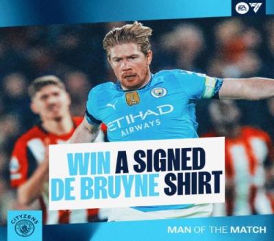 曼城赛后官方宣布,德布劳内当选本场比赛曼城队内最佳球员。