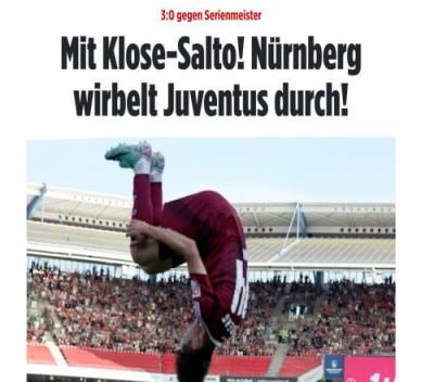 在本周的友谊赛中,纽伦堡3-0战胜了尤文,纽伦堡球员福克尔打进一球。进球后的福克尔非常兴奋,庆祝时模仿起了克洛泽的空翻庆祝动作,以此想感谢主帅克洛泽对他的栽培。在接受采访时,福克尔表示:“我并不是想照搬克洛泽的庆祝动作,我每天都在努力学习克洛泽的终结能力。”