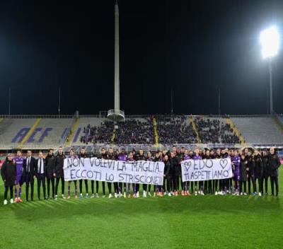 而在佛罗伦萨主场对恩波利的意大利杯1/8决赛前,佛罗伦萨全队在球场上打出横幅称:“你不想让我们穿特制T恤……但这是横幅。博维,我们在等你!”