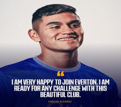 埃弗顿宣布租借这位阿根廷中场半个赛季,赛季结束能够选择买断。阿尔卡拉斯此前曾效力过南安普顿,有过英超经验。