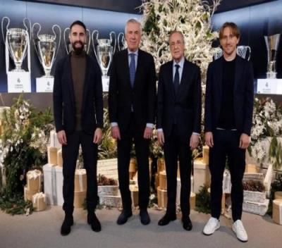 体育资讯12月24日报道宣称 圣诞前夕,皇马按照传统惯例拍摄圣诞祝福视频,弗洛伦蒂诺、安切洛蒂、莫德里奇、卡瓦哈尔出镜。