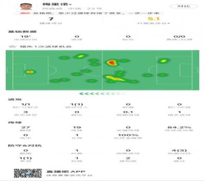 梅里诺全场数据:1次错失得分机会,5次对抗赢得4次