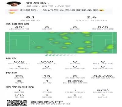 体育资讯1月23日报道宣称 在本轮欧冠曼城2-4不敌巴黎的比赛中,刘易斯替补登场表现不佳,以下为他在本场数据: