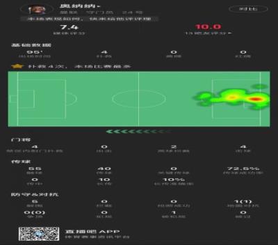 尽力局!奥纳纳本场:4次扑救丢2球,5次解围,评分队内最高
