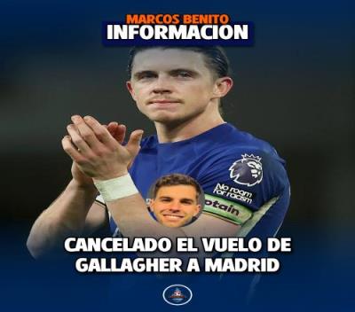 体育资讯08月20日报道宣 西班牙六台记者马科斯-贝尼托报道,切尔西中场加拉格尔转会马德里竞技的进程又有了新的问题:加拉格尔飞往马德里的航班取消了,而且目前没有其他安排。