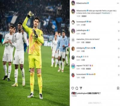 赛后库尔图瓦也在个人社媒晒出本场赛后谢场时的照片,配文写道:“我们必须在面对出色对手时做出回应,并且做到了这一点。很棒的团队胜利!”