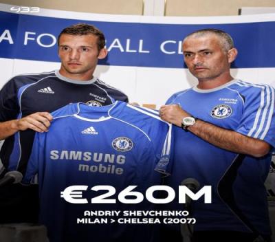 433算通胀后穆帅在切尔西引援:舍瓦2.6亿,埃辛2.07亿,3人超2亿