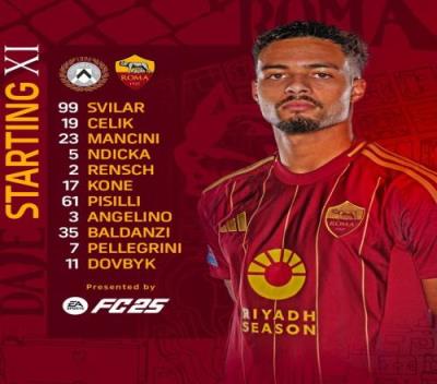 罗马替补:70-德马季、95-戈里尼、12-阿卜杜勒哈米德、15-胡梅尔斯、26-达尔、4-克里斯坦特、16-帕雷德斯、59-扎莱夫斯基、14-肖穆罗多夫、18-苏莱、21-迪巴拉、56-萨勒马克尔斯、92-沙拉维