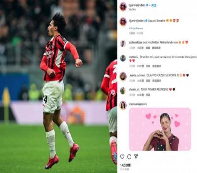 比赛第90+2分钟,赖因德斯杀入禁区打近角破门,帮助米兰扳平比分。