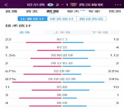 体育资讯2月4日报道宣称 在本轮英超,切尔西2-1逆转战胜西汉姆。以下为双方全场数据对比: