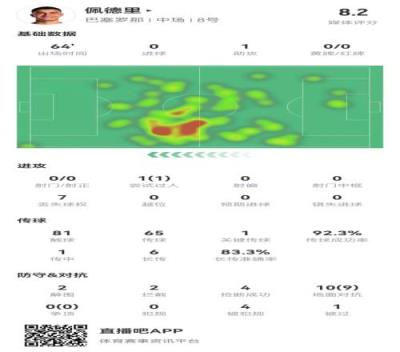 体育资讯2月7日报道宣称 巴萨在本轮国王杯5-0领先瓦伦西亚,佩德里本场数据如下: